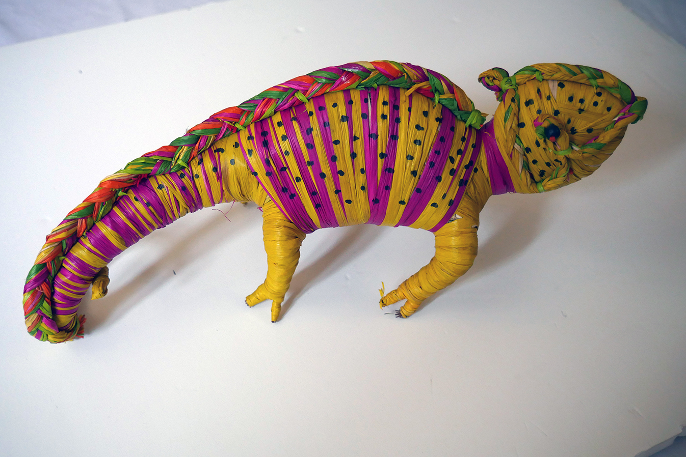 sculpture en raphia très colorée